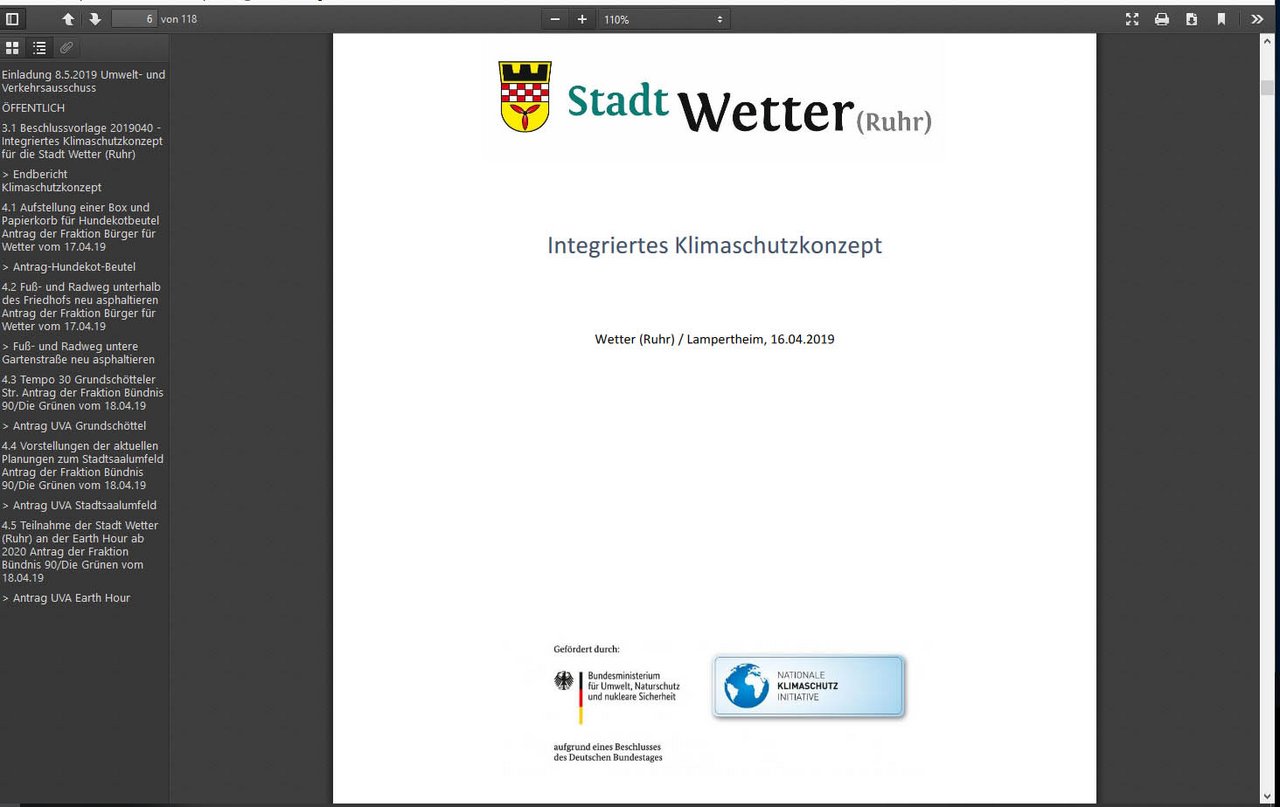 Wir haben nun das integrierte Klimaschutzkonzept vorliegen. Es ist in einem vorbildlichen Prozess mit der entsprechenden Bürgerbeteiligung entstanden. Eine größere Resonanz in der Bürgerschaft wäre aber wünschenswert gewesen.